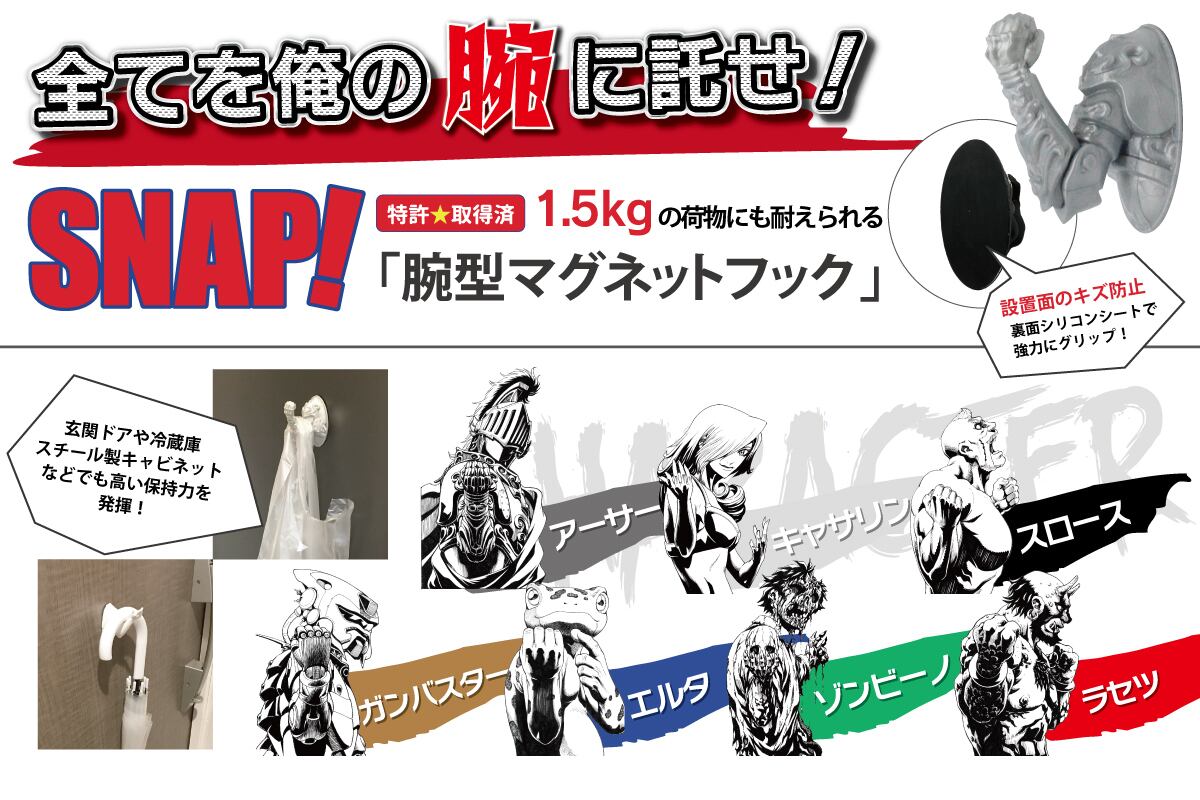 ドアにおどろき!かけてビックリ!腕型のマグネットフックです。